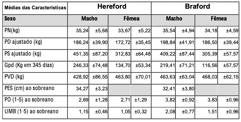 Na formação dos grupos contemporâneos foram incluídos os efeitos do sexo, do ano e da estação de nascimento da progênie, da fazenda na qual foi criado, regime alimentar, grupo de manejo, data da medida e os grupos genéticos do produto e da matriz.