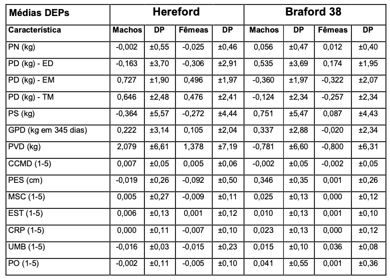 PD - Peso a Desmama (Kg). O peso a desmama é avaliado com base em informações de DEP direta e DEP materna.